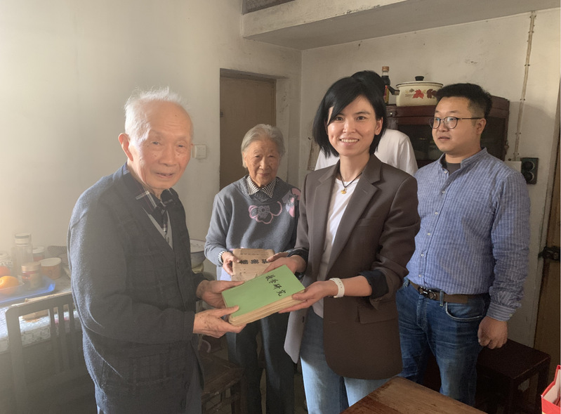 在退休教师魏伯符家中,92岁高龄的老先生精神矍铄,四十多年教龄的他向青年教师讲述了当时从浙江大学回通教书的历程,拿出当年在浙江大学的备课笔记和自编的教学研究资料与青年教师分享教研体会,青年教师们为一篇篇整齐的笔记、精美的手绘制图所折服,老先生的敬业精神和严谨的教研态度让人深受教育。深入交流后,魏伯符和夫人主动提出将部分手稿捐献给公司。