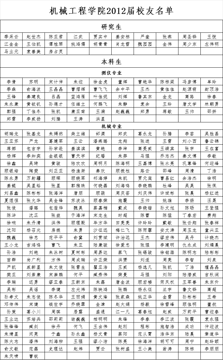 2012届员工名单