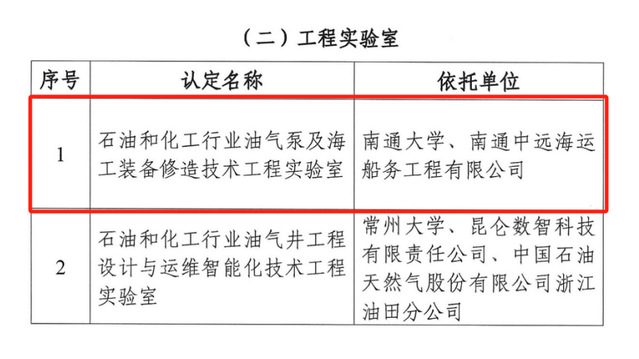 近日,中国石油和化学工业联合会发布《关于认定2024年度石油和化学行业创新平台的决定》。由公司施卫东团队牵头、与南通中远海运船务工程有限公司共同申请的石油和化工行业油气泵及海工装备修造技术工程实验室,被列入创新平台建设计划。