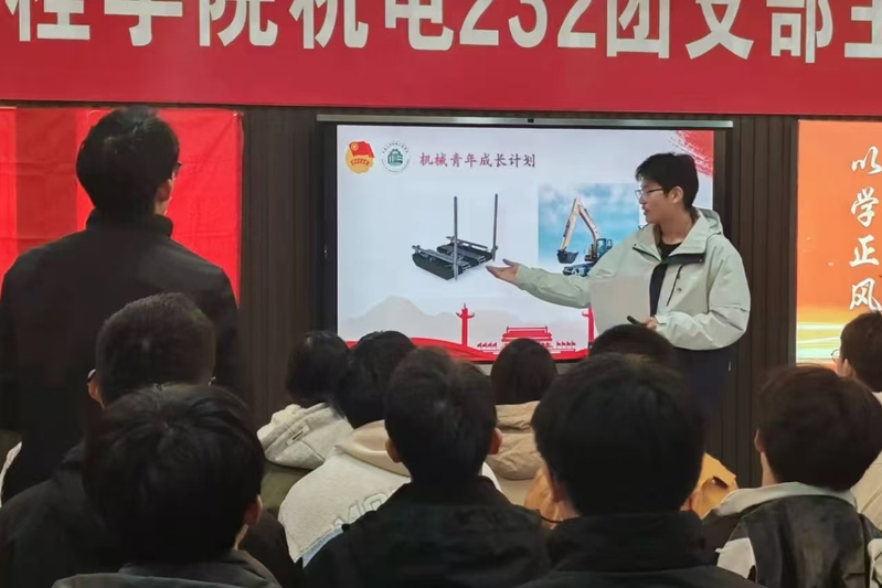 孙子昂同学围绕“青年树立强国志,机械筑梦新工科”展开宣讲,结合当下时代发展大势与机械专业前景,以同龄人的视角分享青年在工科领域大有可为。从大国重器中的机械力量,到新兴智能制造对人才的需求,呼吁同学们不负韶华,将个人志向融入机械强国梦,为投身新工科建设筑牢根基。话语质朴却充满力量,引发同学们强烈共鸣。