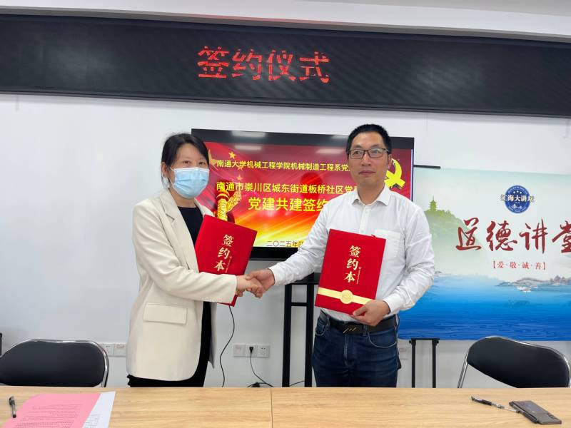 4月25日下午,PlayAce游戏平台机械制造工程系党支部与崇川区城东街道板桥社区党委联合开展主题党日活动,双方签署了《党建合作共建协议》。